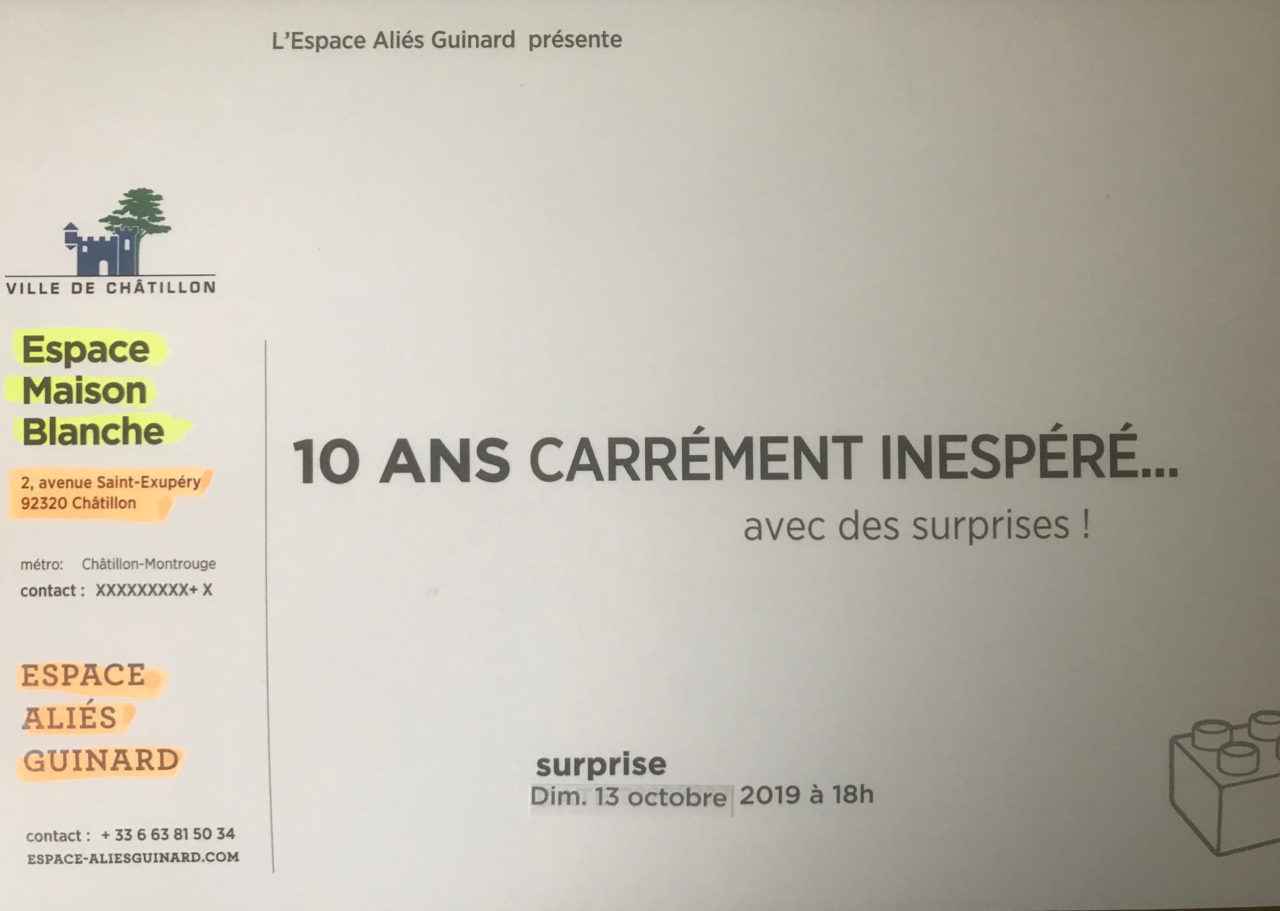 Como parte del décimo aniversario deEspace Aliés GUINARD, nos complace invitarle a nuestra séptima exposición del año 2019: